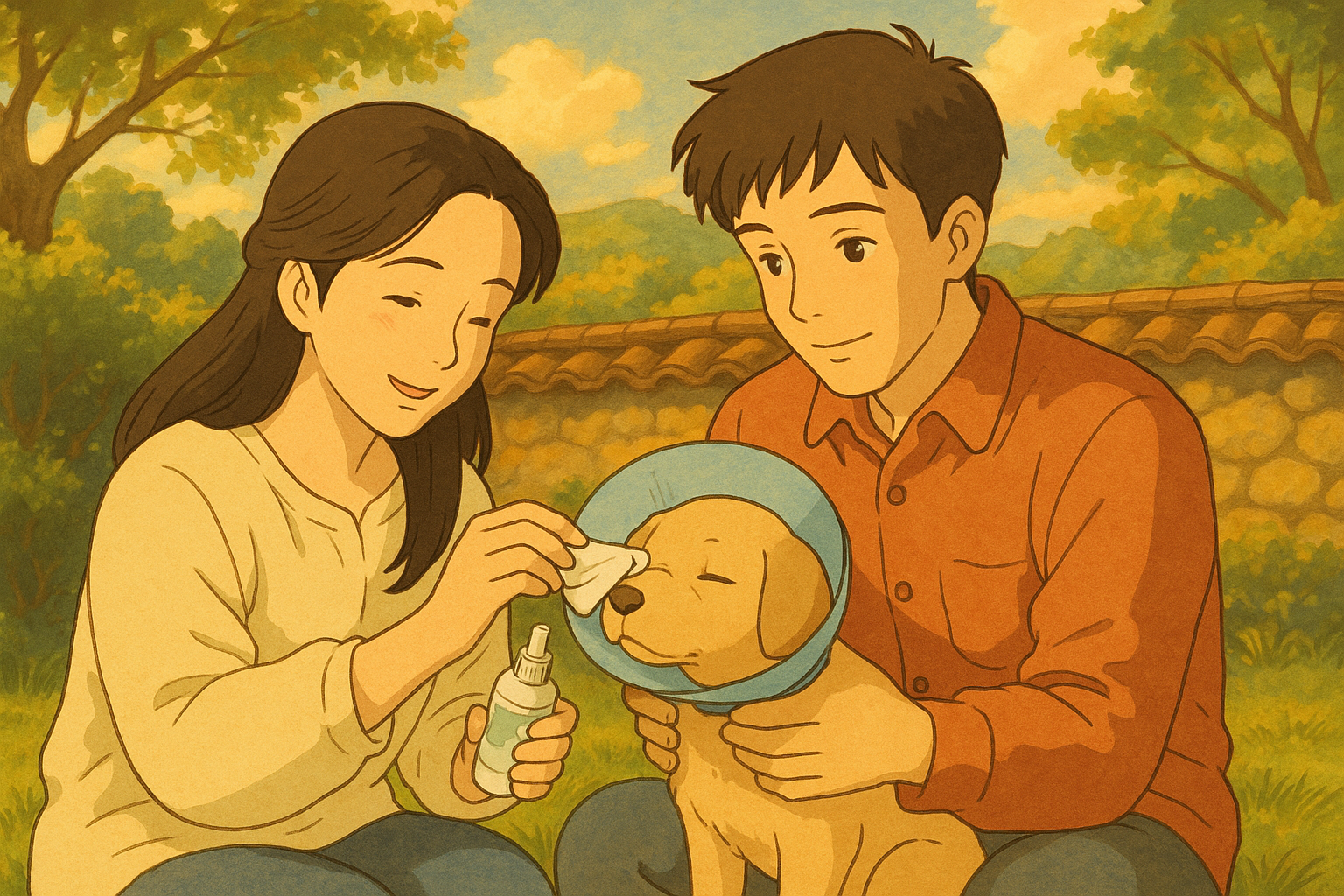 눈 주변이 축축하지 않도록 마른 거즈로 가볍게 눌러줍니다. 끝난 후 간식이나 칭찬을 통해 강아지에게 좋은 인식을 심어주는 것도 잊지 마세요.